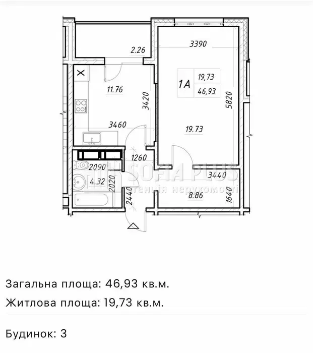 Total area 46m2, living area 20m2, kitchen: 12m2, 14 floor, 24-storey building, wall material - reinforced concrete panel, the layout of the proposed real estate - separate, condition of the object - finishing from builders, one separate bathroom, one loggia.