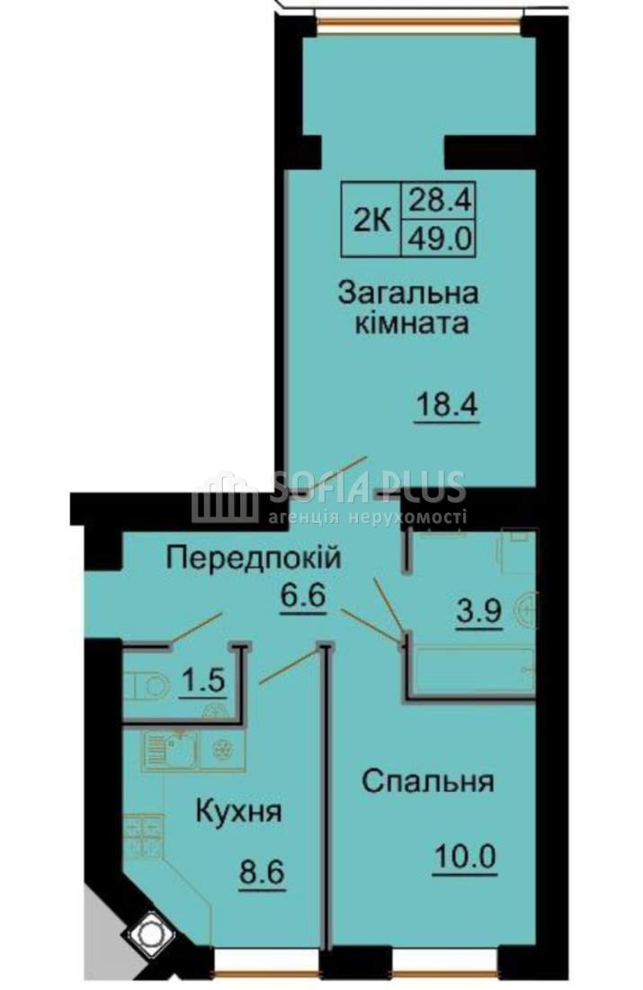 Total area 49m2, living area 28.4m2, kitchen: 8.6m2, 4 floor, 10-storey building, wall material - brick, the layout of the proposed real estate - separate, condition of the object - finishing from builders, one bathroom combined, one loggia.